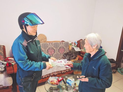 刘献梅将报纸送到孤寡老人家中。
